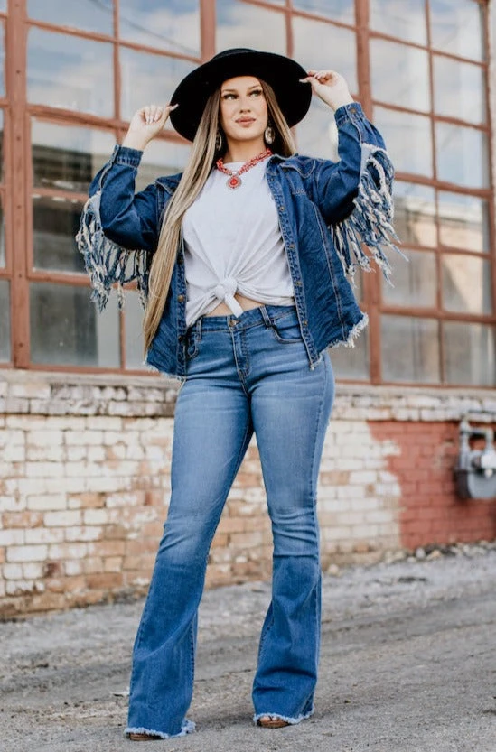 Women’s mid wash flare jeans. When you want a more subtle flare these jeans are perfect. Stretchy and comfortable.