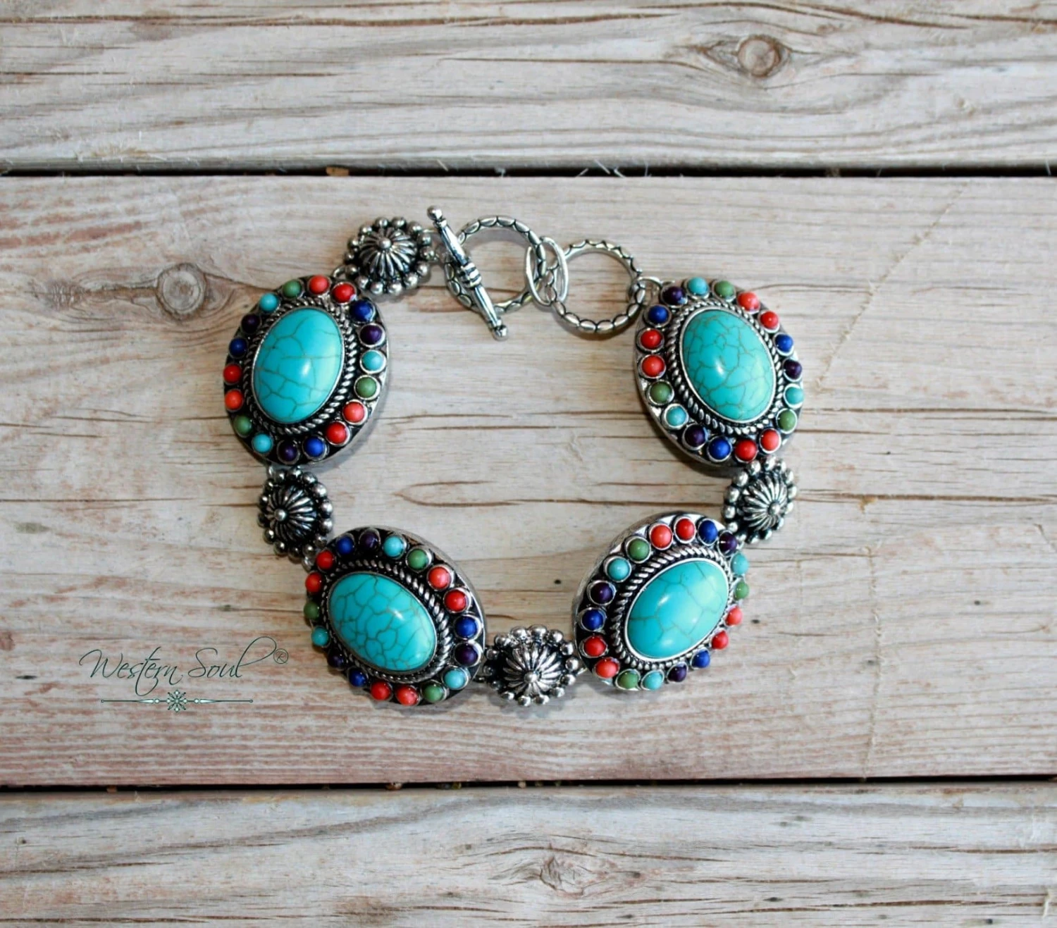 Beautifully designed western concho turquoise links bracelet.